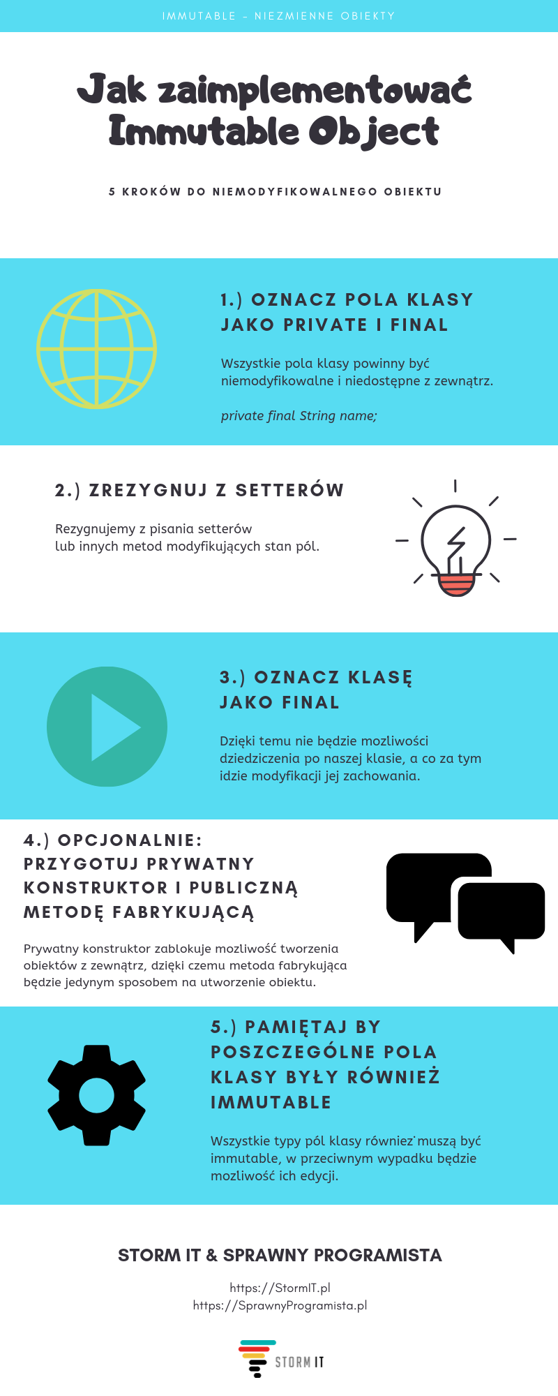 W dokumentacji Oracle możemy przeczytać zalecenia odnośnie strategii implementacji niemodyfikowalnych obiektów. Nie jest to nic trudnego, trzeba jednak pamiętać o kilku poniższych zasadach: