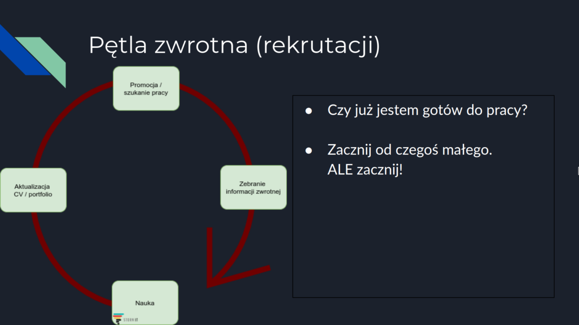 - Przykładowo, nawet jeżeli za kilka lat widzimy się jako fullstack developer, to warto zacząć od jednej specjalizacji np. backendu i dopiero później to rozszerzyć
