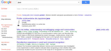 Przykładowo, zamiast wyszukiwać informacji w stylu: kurs programowania, możesz poszukać: darmowy kurs programowania java. Niby taka prosta rzecz, ale potrafi oszczędzić sporo szukania. O bardziej zaawansowanych operatorach wyszukiwarki Google opowiem za chwilę.